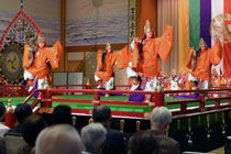 「第41回佼成雅楽会公演」が11月9日、法輪閣大ホールで行われました。第1部では『越殿楽残楽三返』など4曲の管絃が、第2部では『賀殿破・急』をはじめ3曲の舞楽が披露されました。荘厳な音色と伝統美あふれる舞台が約500人の観客を魅了しました。