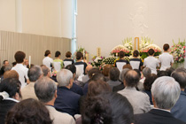 看護師10人による奉献の儀が行われ、遺族と病院関係者が共に冥福を祈った 佼成病院は9月24日、観音ホールで「病没者慰霊式」を行い、昨年1年間に同病院で他界した患者の遺族をはじめ病院関係者ら約200人が参列した。 読経供養…