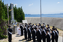 岩国教会では同日、壮年部員ら約40人が「柱島戦艦陸奥犠牲者及び無縁仏慰霊供養」を山口・岩国市柱島で執り行いました。同島には、昭和18年に沖合で沈没した戦艦陸奥の犠牲者の慰霊碑と、藩政時代の流刑者を弔う慰霊碑が建立されています。壮年部員らは2組に分かれて慰霊碑周辺を清掃した後、慰霊供養を厳修しました。参加者たちはいのちや平和の尊さ、歴史を学ぶ大切さ、壮年の生き方など感想を語り合い、世界平和に貢献する誓いを新たにしました。
